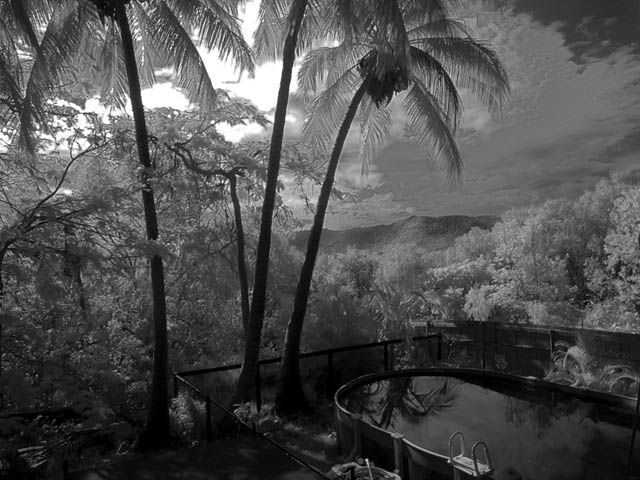 That's only the beginning of the possibilities, though. While you have the camera on the tripod, I would suggest taking a second frame, without moving the camera at all, without the IR filter in place. You can use the unfiltered image, in combination with the filtered image and your image editing program, to do some really interesting things...