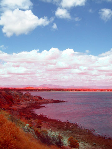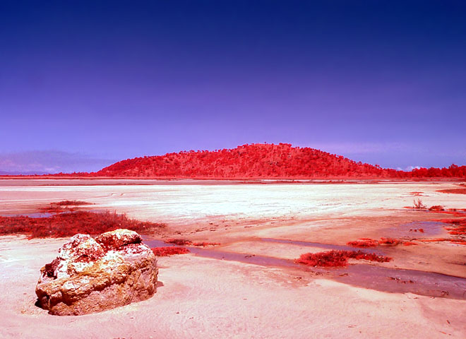 Another digital false-colour infrared shot, this one of a salt pan and small