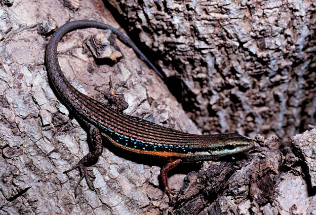small Australian skink, Carlia jarnoldae. this one is a male in breeding